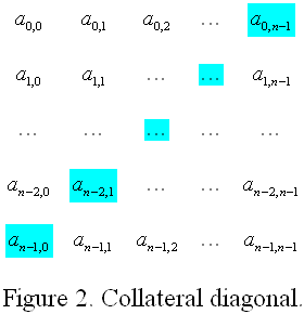 The elements of the main diagonal are shown in green in figure 1, and the elements of the collateral diagonal are shown in cyan in figure 2.